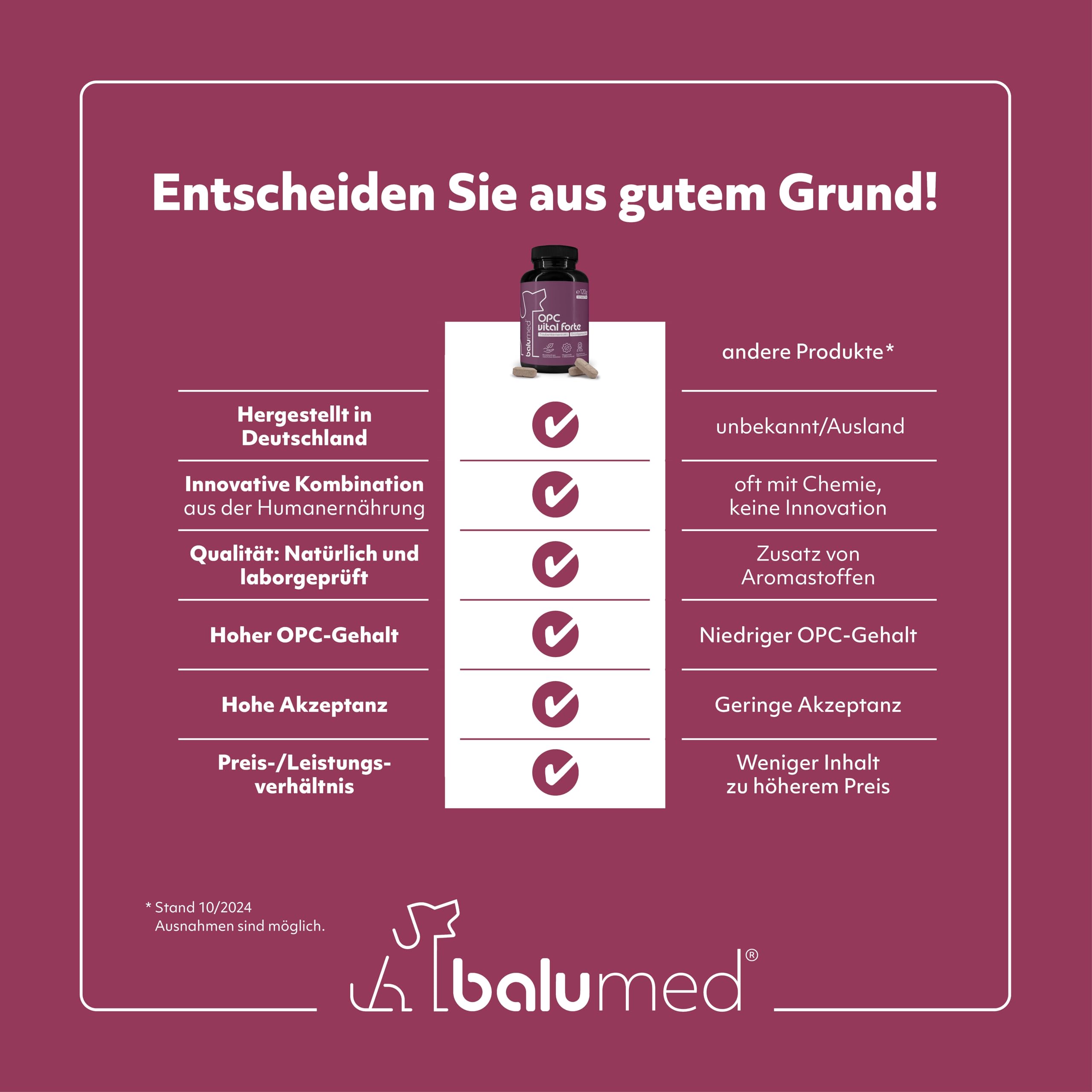 - EINFACH MEHR ALS EIN LECKERLI – balumed Tabletten ergänzen das Futter deines Hundes mit einem OPC -Gehalt von 60 % aus Traubenkern-Extrakt.