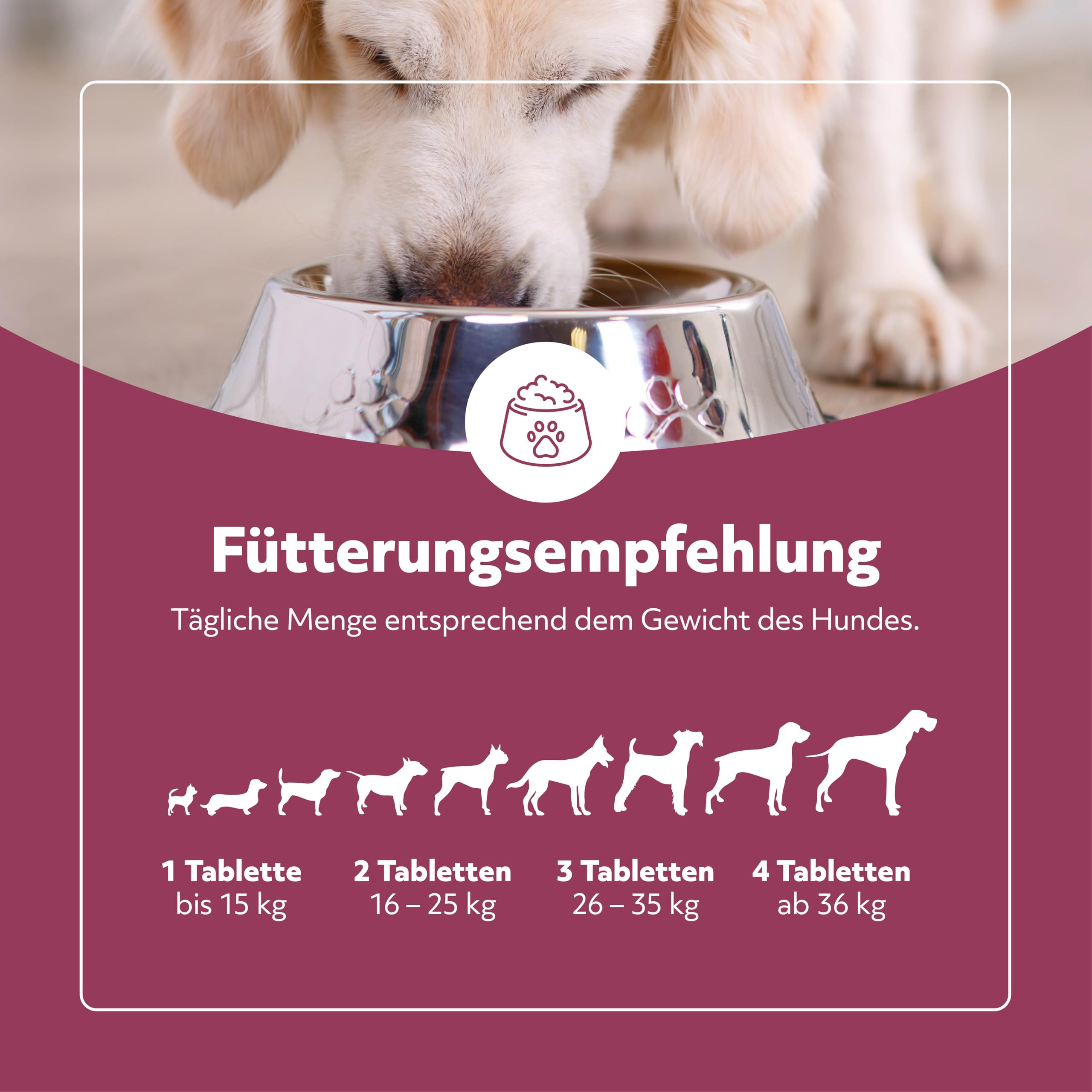 - HOHE AKZEPTANZ - Kein unangenehmer Geschmack oder Geruch, der den Hund abschrecken könnte. Kann als Leckerli verwendet werden. Siehe Fütterungsempfehlungen. Für alle Hunderassen und jedes Alter geeignet.