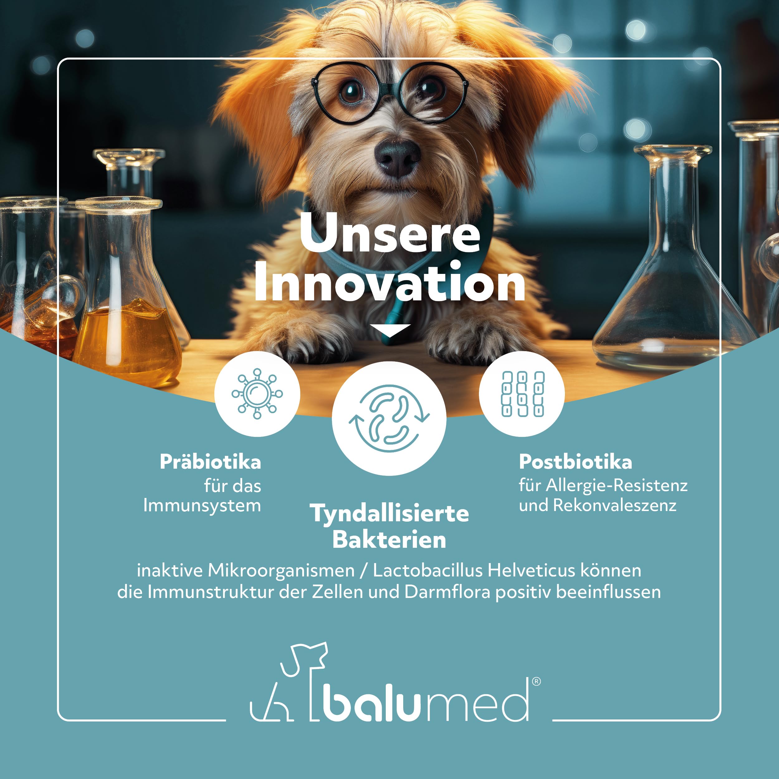 - balumed Produkte werden mit Hilfe von Biologen und Veterinärmedizinern entwickelt, in Deutschland im Kaltpressverfahren hergestellt und im Labor geprüft, um höchste Qualität für die Vitalität Ihres geliebten Hundes zu sichern.